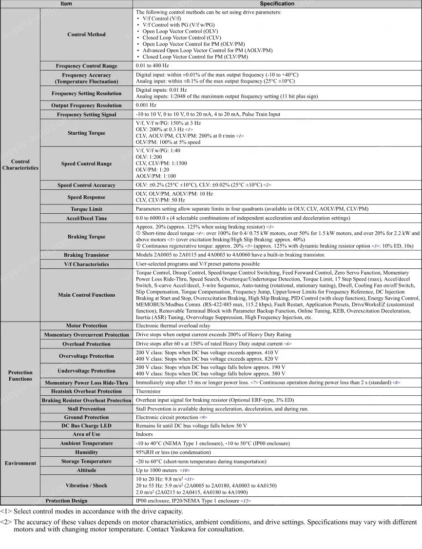 • Yaskawa H1000 CIMR-HB4A0006FBC 2.2KW