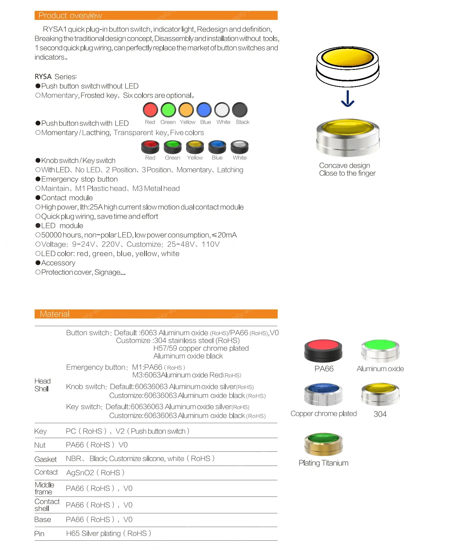 • Blue transparent button, plastic black border, can be equipped with lamp holder module