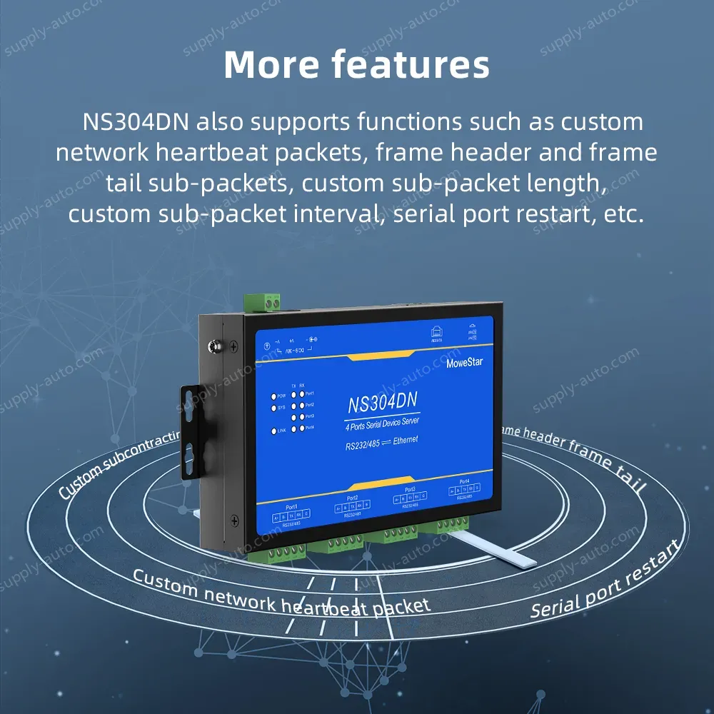 ● Support 4-way RS232/485 to Ethernet, 4 serial ports are independent of each other, do not affect each other